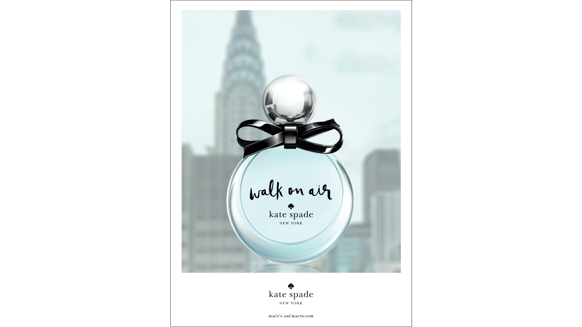 Art-directed kate spade new york’s second pillar fragrance, Walk On Air. This included the design of the bottle, branding, packaging, the editorial campaign, videos and in-store materials.